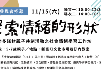 由小間工作室 - 科技聊藝工作室發起,研究不同媒材對於親子之間互動有什麼影響,活動將以輕鬆有趣的方式進行,可以放輕鬆一起來玩!