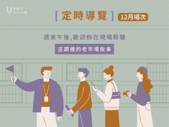 週六上午11點,讓長期在此工作的夥伴帶你認識它的「新」與「舊」,從《一口新富》常設展出發,聆聽屬於這裡的市場生活、建築設計以及古蹟活化的故事。