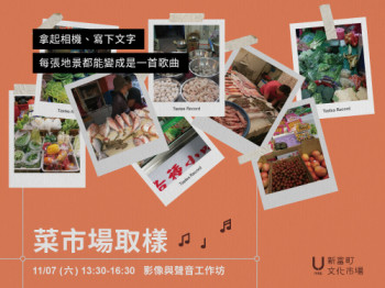 去菜市場除了買菜,還可以創作音樂?!本工作坊將走入市場裡頭探索各種充沛的感知,透過拍照與程式分析,將菜市場的影像與經驗轉化成音樂。
