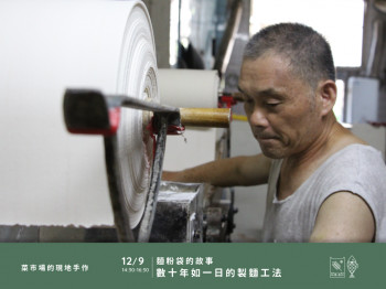 「麵粉袋的故事」系列課程第二講將由東三水街市場製麵四十餘年的鄭老闆領路,從傳統製麵的手路中,一起回顧麵食風潮正鼎盛的年代。
