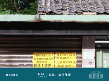 文化資產的保存運動身後,為何而留?為誰而留?從文化資產的起源切入,了解台灣面對文化資產的處理方式與政策。