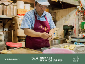 「麵粉袋的故事」系列課程第三講由萬華老店「太和餅舖」陳老闆現身說法烘焙班的過往、糕餅的演進,共同探討當代飲食的再變。